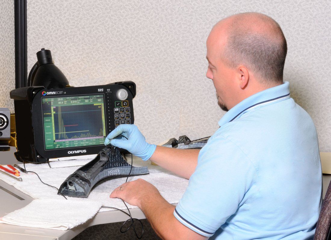 Unlike the immersion method, contact testing is normally used on complex geometry parts such as blades, vanes, fabricated parts and composite materials consisting of welds and/or brazes.